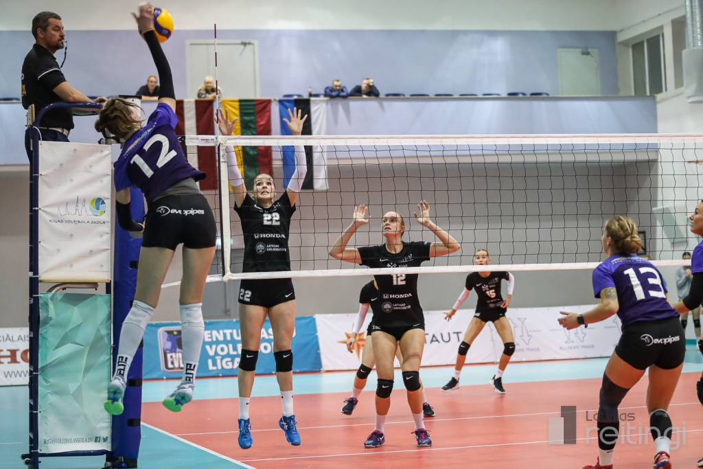 Pirmais sets pagāja līdzīgā cīņā. Piecus punktus pēc kārtas guva mājinieces, panākot 10:6 vadību, taču rīdzinieces lēnām panāca un apdzina pretinieces, setam beidzoties ar nesekmīgu Līvas Solas uzbrukumu. Otrajā setā RVS/LU pēc Megijas Dambrehtes uzbrukuma panāca 19:11, taču pretinieces, servējot Simonai Rozītei, guva 13 punktus pēc kārtas, uzvarot setu. Trešais sets sākās ar daudzām mājinieču kļūdām un 6:0 un 9:1 vadību RVS/LU, bet ceturtā seta likteni izšķīra pēc 10:9 seši pēc kārtas gūti punkti rīdzinieču izpildījumā.